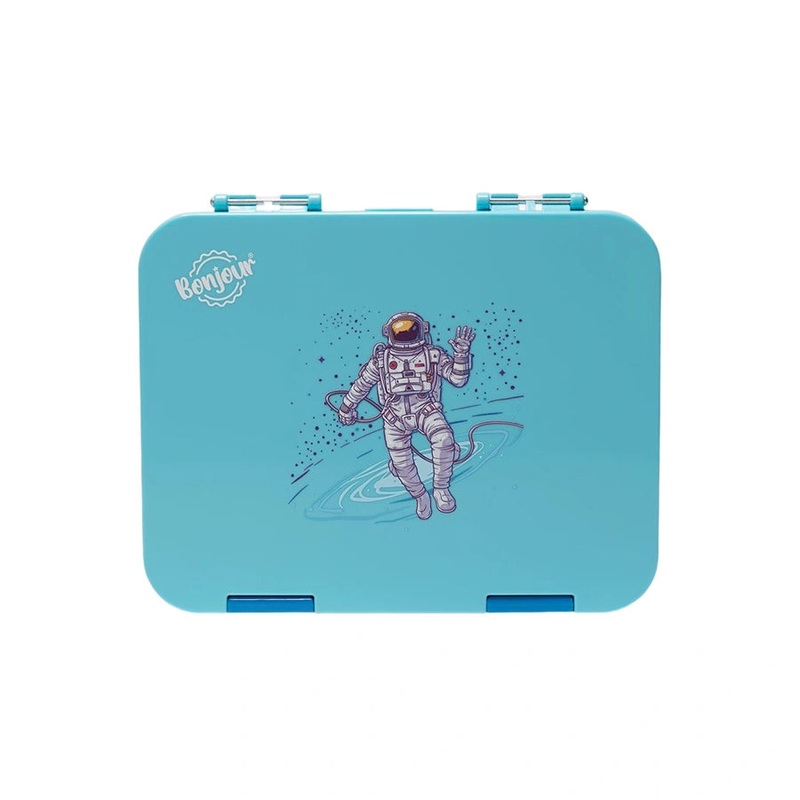 Bonjour Tiff Box Dual Clip Bento Lunch Box, 6/4 Compartments.(Blue Astronaut)