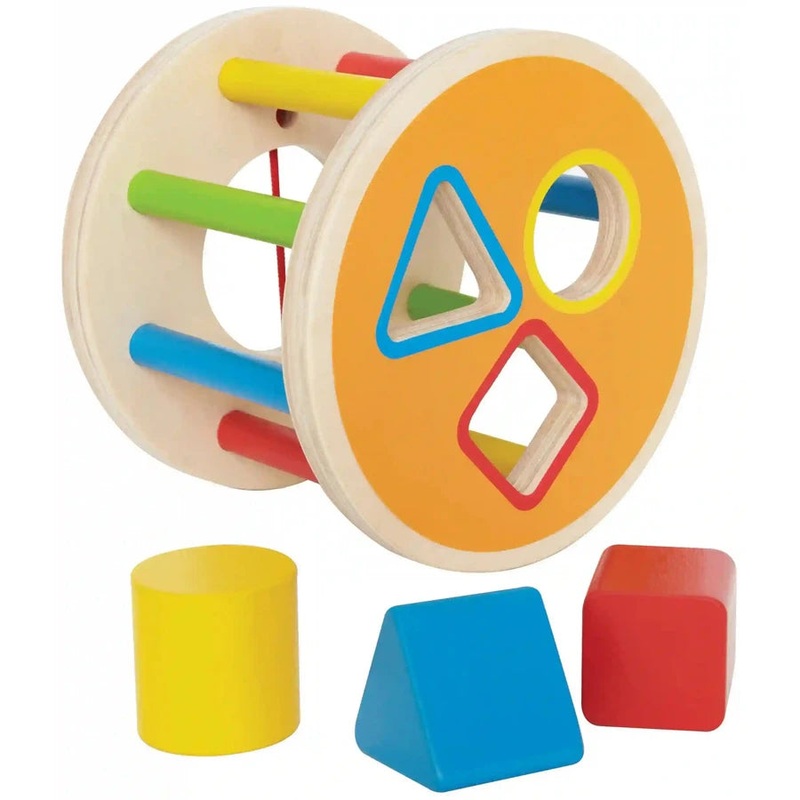Drop the shapes into the holes then roll it on its way.